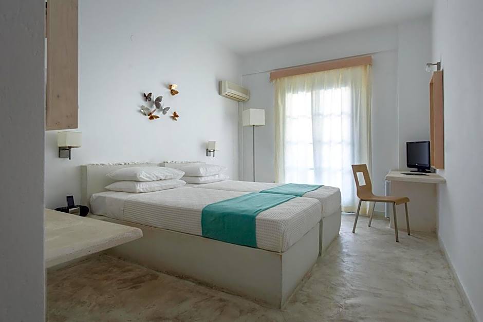 Whitewashed room with air conditioning, satellite TV and mini-bar.